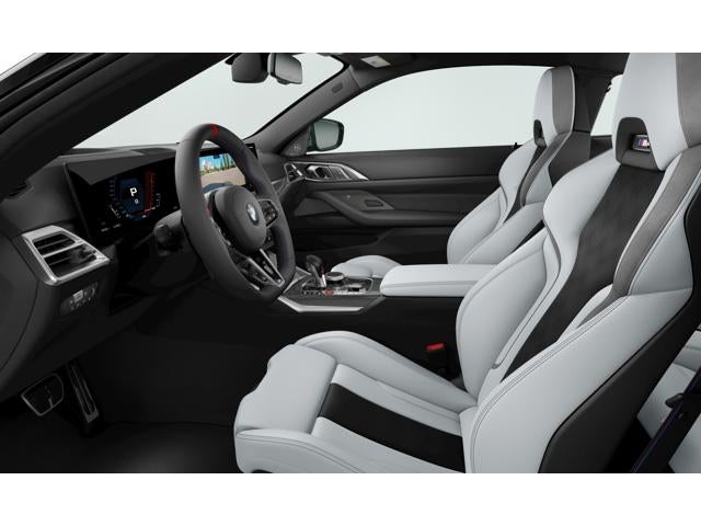 Black Sapphire Metallic 2026 BMW M4 Competition AWD 8-Speed Automatic Sport 3.0L I6 Turbocharged DOHC 24V LEV3-ULEV70 523hp 16 Speakers, 4-Wheel Disc Brakes, ABS brakes, Adaptive suspension, Air Conditioning, Alloy wheels, AM/FM radio: SiriusXM with 360L, Apple CarPlay and Android Auto Compatibility, Audio memory, Auto High-beam Headlights, Auto-dimming door mirrors, Auto-dimming Rear-View mirror, Automatic temperature control, BMW Assist ECall, BMW TeleServices, Brake assist, Bumpers: body-color, Carbon Fiber Trim, Compass, Connected Package Pro Limited Term, ConnectedDrive Services, Delay-off headlights, Distance Control Assist (DCA) with Steering Assistant, Driver door bin, Driver vanity mirror, Driving Assistance Professional Package, Driving Assistant Professional, Dual front impact airbags, Dual front side impact airbags, Electronic Stability Control, Emergency communication system: BMW Assist eCall, Executive Package, Exterior Parking Camera Rear, Four wheel independent suspension, Front anti-roll bar, Front Bucket Seats, Front Center Armrest, Front dual zone A/C, Front reading lights, Front Ventilated Seats, Fully automatic headlights, Galvanic Controls, Garage door transmitter, Harman/Kardon Surround Sound System, harman/kardon® Speakers, Heated door mirrors, Heated Front Seats, Heated front seats, Heated steering wheel, HVAC memory, Illuminated entry, Knee airbag, Leather Shift Knob, Leather steering wheel, Live Cockpit Pro with Navigation, Low tire pressure warning, Lumbar Support, M Compound Brakes with Black Calipers, M Shadowline Lights, M Sport Seats, Memory seat, Navigation, Navigation System, Occupant sensing airbag, Outside temperature display, Overhead airbag, Overhead console, Panic alarm, Parking Assistance Package, Parking Assistant Plus, Parking View with 3D View (Surround View), Partial Automated Driving, Passenger door bin, Passenger vanity mirror, Personal ESIM 5G, Power door mirrors, Power driver seat, Power Front Seats, Power passenger seat, Power steering, Power windows, Radio data system, Radio: AM/FM Audio System, Rain sensing wipers, Rear anti-roll bar, Rear reading lights, Rear seat center armrest, Rear window defroster, Remote Engine Start, Remote keyless entry, Security system, SiriusXM with 360L and 1 Year Trial Subscription, Speed control, Speed-sensing steering, Speed-Sensitive Wipers, Split folding rear seat, Spoiler, Sport steering wheel, Steering wheel mounted audio controls, Tachometer, Telescoping steering wheel, Tilt steering wheel, Traction control, Traffic Jam Assistant, Trip computer, Turn signal indicator mirrors, Variably intermittent wipers, Wheels: 19 x 9.5 Front/20 x 10.5 Rear (style 826M), Widescreen Display.
