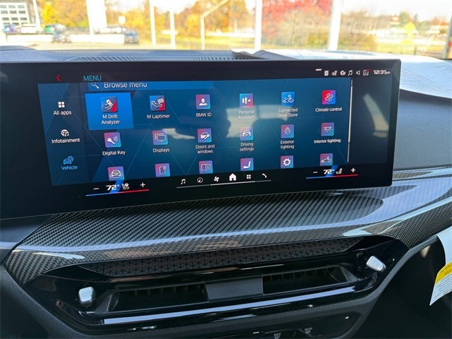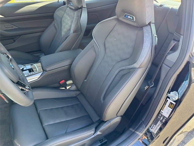 Black Sapphire Metallic 2026 BMW M4 Competition AWD 8-Speed Automatic Sport 3.0L I6 Turbocharged DOHC 24V LEV3-ULEV70 523hp 16 Speakers, 4-Wheel Disc Brakes, ABS brakes, Adaptive suspension, Air Conditioning, Alloy wheels, AM/FM radio: SiriusXM with 360L, Apple CarPlay and Android Auto Compatibility, Audio memory, Auto High-beam Headlights, Auto-dimming door mirrors, Auto-dimming Rear-View mirror, Automatic temperature control, BMW Assist ECall, BMW TeleServices, Brake assist, Bumpers: body-color, Carbon Fiber Trim, Compass, Connected Package Pro Limited Term, ConnectedDrive Services, Delay-off headlights, Distance Control Assist (DCA) with Steering Assistant, Driver door bin, Driver vanity mirror, Driving Assistance Professional Package, Driving Assistant Professional, Dual front impact airbags, Dual front side impact airbags, Electronic Stability Control, Emergency communication system: BMW Assist eCall, Executive Package, Exterior Parking Camera Rear, Four wheel independent suspension, Front anti-roll bar, Front Bucket Seats, Front Center Armrest, Front dual zone A/C, Front reading lights, Front Ventilated Seats, Fully automatic headlights, Galvanic Controls, Garage door transmitter, Harman/Kardon Surround Sound System, harman/kardon® Speakers, Heated door mirrors, Heated Front Seats, Heated front seats, Heated steering wheel, HVAC memory, Illuminated entry, Knee airbag, Leather Shift Knob, Leather steering wheel, Live Cockpit Pro with Navigation, Low tire pressure warning, Lumbar Support, M Compound Brakes with Black Calipers, M Drive Professional, M Shadowline Lights, M Sport Seats, Memory seat, Navigation, Navigation System, Occupant sensing airbag, Outside temperature display, Overhead airbag, Overhead console, Panic alarm, Parking Assistance Package, Parking Assistant Plus, Parking View with 3D View (Surround View), Partial Automated Driving, Passenger door bin, Passenger vanity mirror, Personal ESIM 5G, Power door mirrors, Power driver seat, Power Front Seats, Power passenger seat, Power steering, Power windows, Radio data system, Radio: AM/FM Audio System, Rain sensing wipers, Rear anti-roll bar, Rear reading lights, Rear seat center armrest, Rear window defroster, Remote Engine Start, Remote keyless entry, Security system, SiriusXM with 360L and 1 Year Trial Subscription, Speed control, Speed-sensing steering, Speed-Sensitive Wipers, Split folding rear seat, Spoiler, Sport steering wheel, Steering wheel mounted audio controls, Tachometer, Telescoping steering wheel, Tilt steering wheel, Traction control, Traffic Jam Assistant, Trip computer, Turn signal indicator mirrors, Variably intermittent wipers, Wheels: 19 x 9.5 Front/20 x 10.5 Rear (style 826M), Wheels: 19 x 9.5 Front/20 x 10.5 Rear Forged Black, Widescreen Display.
