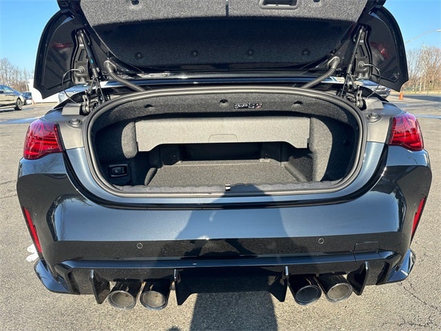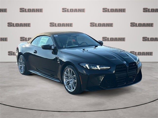 Black Sapphire Metallic 2026 BMW M4 Competition AWD 8-Speed Automatic Sport 3.0L I6 Turbocharged DOHC 24V LEV3-ULEV70 523hp 16 Speakers, 4-Wheel Disc Brakes, ABS brakes, Adaptive suspension, Air Conditioning, Alloy wheels, AM/FM radio: SiriusXM with 360L, Apple CarPlay and Android Auto Compatibility, Audio memory, Auto High-beam Headlights, Auto-dimming door mirrors, Auto-dimming Rear-View mirror, Automatic temperature control, BMW Assist ECall, BMW TeleServices, Brake assist, Bumpers: body-color, Carbon Fiber Trim, Compass, Connected Package Pro Limited Term, ConnectedDrive Services, Convertible roof lining, Convertible roof wind blocker, Delay-off headlights, Distance Control Assist (DCA) with Steering Assistant, Driver door bin, Driver vanity mirror, Driving Assistance Professional Package, Driving Assistant Professional, Dual front impact airbags, Dual front side impact airbags, Electronic Stability Control, Emergency communication system: BMW Assist eCall, Executive Package, Exterior Parking Camera Rear, Four wheel independent suspension, Front anti-roll bar, Front Bucket Seats, Front Center Armrest, Front dual zone A/C, Front reading lights, Front Ventilated Seats, Fully automatic headlights, Galvanic Controls, Garage door transmitter, Glass rear window, Harman/Kardon Surround Sound System, harman/kardon® Speakers, Heated door mirrors, Heated Front Seats, Heated front seats, Heated steering wheel, HVAC memory, Illuminated entry, Integrated roll-over protection, Knee airbag, Leather Shift Knob, Leather steering wheel, Live Cockpit Pro with Navigation, Low tire pressure warning, Lumbar Support, M Compound Brakes with Black Calipers, M Shadowline Lights, M Sport Seats, Memory seat, Navigation, Navigation System, Neck Warmer, Occupant sensing airbag, Outside temperature display, Overhead console, Panic alarm, Parking Assistance Package, Parking Assistant Plus, Parking View with 3D View (Surround View), Partial Automated Driving, Passenger door bin, Passenger vanity mirror, Personal ESIM 5G, Power convertible roof, Power door mirrors, Power driver seat, Power Front Seats, Power passenger seat, Power steering, Power windows, Radio data system, Radio: AM/FM Audio System, Rain sensing wipers, Rear anti-roll bar, Rear reading lights, Rear seat center armrest, Rear window defroster, Remote Engine Start, Remote keyless entry, Security system, SiriusXM with 360L and 1 Year Trial Subscription, Speed control, Speed-sensing steering, Speed-Sensitive Wipers, Split folding rear seat, Sport steering wheel, Steering wheel mounted audio controls, Tachometer, Telescoping steering wheel, Tilt steering wheel, Traction control, Traffic Jam Assistant, Trip computer, Turn signal indicator mirrors, Variably intermittent wipers, Wheels: 19 x 9.5 Front/20 x 10.5 Rear (style 826M), Wheels: 19 x 9.5 Front/20 x 10.5 Rear Forged Silver, Widescreen Display.