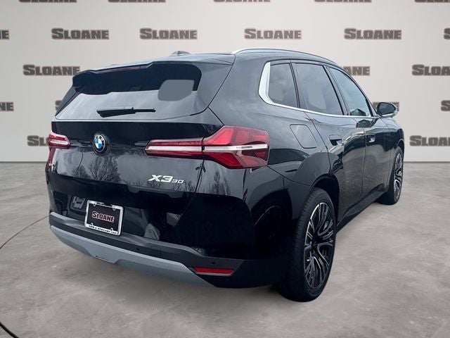 Black Sapphire Metallic 2026 BMW X3 30 xDrive AWD 8-Speed Automatic I4 8-Speed Automatic, 12 Speakers, 4-Wheel Disc Brakes, ABS brakes, Air Conditioning, Alloy wheels, AM/FM Radio, AM/FM radio: SiriusXM, Apple CarPlay and Android Auto Compatibility, Auto High-beam Headlights, Auto-dimming door mirrors, Auto-dimming Rear-View mirror, Automatic temperature control, BMW Assist ECall, BMW Curved Display with HUD, BMW Iconic Glow Kidney Grille, BMW TeleServices, Brake assist, Bumpers: body-color, Delay-off headlights, Distance Control (ACC) with Steering Assistant, Driver door bin, Driver vanity mirror, Driving Assistance Plus, Driving Assistance Professional Package, Driving Assistant Professional, Dual front impact airbags, Dual front side impact airbags, Electronic Stability Control, Emergency communication system: BMW Assist eCall, Exterior Parking Camera Rear, Four wheel independent suspension, Front anti-roll bar, Front Bucket Seats, Front Center Armrest, Front reading lights, Front Ventilated Seats, Fully automatic headlights, Garage door transmitter, Genuine wood console insert, Harman/Kardon Surround Sound System, Heated door mirrors, Heated Front Seats, Heated front seats, Heated Steering Wheel, Hi-Fi Sound System, Illuminated entry, Interior Camera, Knee airbag, Lane Change Assistant, Low tire pressure warning, Lumbar Support, Memory seat, Navigation, Navigation system: BMW Maps Navigation, Occupant sensing airbag, Outside temperature display, Overhead airbag, Overhead console, Panic alarm, Panoramic Moonroof, Parking Assistant Plus, Parking View with 3D View (Surround View), Passenger door bin, Passenger vanity mirror, Personal ESIM 5G, Power door mirrors, Power driver seat, Power Front Seats, Power Liftgate, Power moonroof: Panoramic, Power passenger seat, Power steering, Power windows, Premium Content 1, Premium Package, Radio data system, Rain sensing wipers, Rear anti-roll bar, Rear reading lights, Rear seat center armrest, Rear window defroster, Rear window wiper, Remote Engine Start, Remote keyless entry, Security system, SiriusXM with 360L and 1 Year Trial Subscription, Speed control, Speed-Sensitive Wipers, Split folding rear seat, Spoiler, Sport Seats, Sport steering wheel, Steering wheel mounted audio controls, Tachometer, Telescoping steering wheel, Tilt steering wheel, Traction control, Traffic Jam Assistant, Travel and Comfort System, Trip computer, Turn signal indicator mirrors, Variably intermittent wipers, Veganza Perforated and Quilted Upholstery, Wheels: 19 x 8.5 Aero Midnight Grey Bicolor, Wheels: 20 x 9.0 Front and 20 x 10.5 Rear Bicolor, Wireless Device Charging, 8-Speed Automatic.