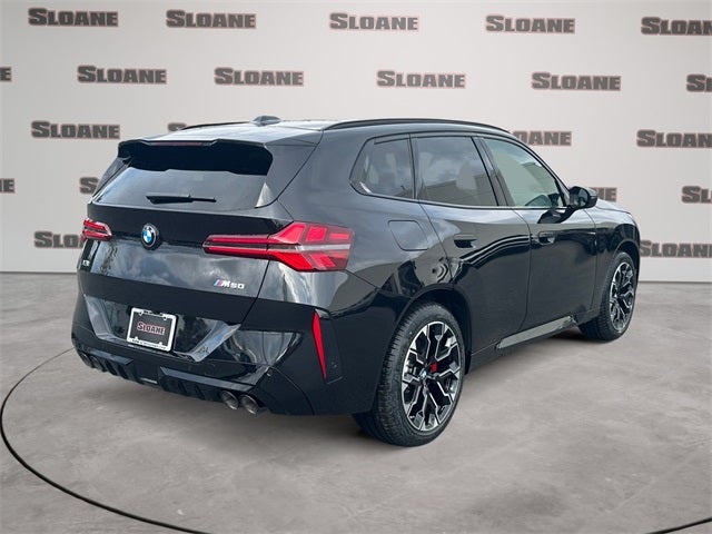 Black Sapphire Metallic 2026 BMW X3 M50 xDrive AWD 8-Speed Automatic I6 8-Speed Automatic, 12 Speakers, 4-Wheel Disc Brakes, ABS brakes, Adaptive suspension, Air Conditioning, Alloy wheels, AM/FM Radio, AM/FM radio: SiriusXM, Apple CarPlay and Android Auto Compatibility, Auto High-beam Headlights, Auto-dimming door mirrors, Auto-dimming Rear-View mirror, Automatic temperature control, BMW Assist ECall, BMW Curved Display with HUD, BMW TeleServices, Brake assist, Bumpers: body-color, Delay-off headlights, Distance Control (ACC) with Steering Assistant, Driver door bin, Driver vanity mirror, Driving Assistance Plus, Driving Assistance Professional Package, Driving Assistant Professional, Dual front impact airbags, Dual front side impact airbags, Electronic Stability Control, Emergency communication system: BMW Assist eCall, Extended Shadowline Trim, Exterior Parking Camera Rear, Four wheel independent suspension, Front anti-roll bar, Front Bucket Seats, Front Center Armrest, Front reading lights, Front Ventilated Seats, Full LED Headlights with Cornering Light, Fully automatic headlights, Garage door transmitter, Harman/Kardon Surround Sound System, Heated door mirrors, Heated Front Seats, Heated front seats, Heated steering wheel, Hi-Fi Sound System, Illuminated entry, Interior Camera, Knee airbag, Lane Change Assistant, Leather steering wheel, Low tire pressure warning, Lumbar Support, M Sport Brake with Blue Calipers, M Sport Brakes with Red Calipers, M Sport Package Pro, M Sport Professional Package, Memory seat, Navigation, Navigation system: BMW Maps Navigation, Occupant sensing airbag, Outside temperature display, Overhead airbag, Overhead console, Panic alarm, Parking Assistant Plus, Parking View with 3D View (Surround View), Passenger door bin, Passenger vanity mirror, Personal ESIM 5G, Power door mirrors, Power driver seat, Power Front Seats, Power Liftgate, Power moonroof: Panoramic, Power passenger seat, Power steering, Power windows, Premium Content 1, Premium Package, Radio data system, Rain sensing wipers, Rear anti-roll bar, Rear Climate Control Console, Rear reading lights, Rear seat center armrest, Rear window defroster, Rear window wiper, Remote keyless entry, Security system, SiriusXM with 360L and 1 Year Trial Subscription, Speed control, Speed-sensing steering, Speed-Sensitive Wipers, Split folding rear seat, Spoiler, Sport Seats, Sport steering wheel, Steering wheel mounted audio controls, Tachometer, Telescoping steering wheel, Tilt steering wheel, Traction control, Traffic Jam Assistant, Trip computer, Turn signal indicator mirrors, Variably intermittent wipers, Veganza Perforated and Quilted Upholstery, Wheels: 20 x 9 Front and 20 x 10.5 Rear M Jet Black, Wireless Device Charging, 8-Speed Automatic.