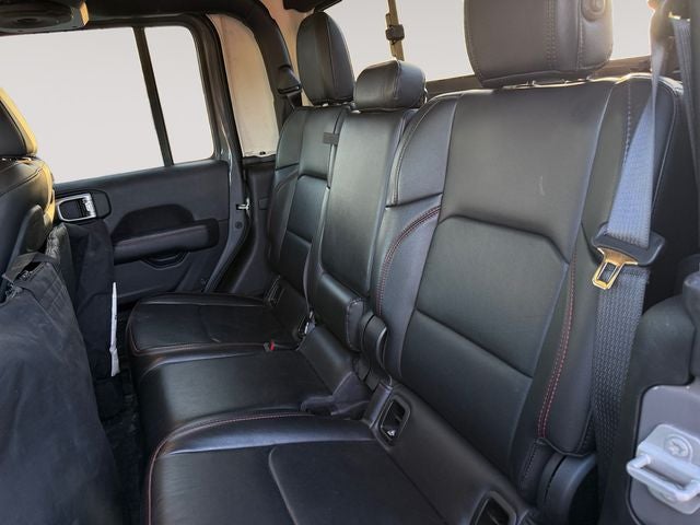 4-Wheel Disc Brakes, 4.10 Rear Axle Ratio, 9 Speakers, 97 MPH Vehicle Max Speed Calibration, ABS brakes, Air Conditioning, Alloy wheels, AM/FM radio: SiriusXM, Apple CarPlay/Android Auto, Auto-dimming Rear-View mirror, Automatic temperature control, Body Color 3-Piece Hard Top, Body Color Fender Flares (2-Piece), Brake assist, Cold Weather Group, Compass, Daytime Running Lamps LED Accents, Delay-off headlights, Driver door bin, Driver vanity mirror, Dual front impact airbags, Dual front side impact airbags, Electronic Stability Control, Emergency communication system, Freedom Panel Storage Bag, Front anti-roll bar, Front Bucket Seats, Front Center Armrest w/Storage, Front dual zone A/C, Front fog lights, Front LED Fog Lamps, Front License Plate Bracket, Front reading lights, Fully automatic headlights, Garage door transmitter, Heated door mirrors, Heated Front Seats, Heated Steering Wheel, Illuminated entry, Integrated roll-over protection, LED Lighting Group, LED Park Turn Lamps, LED Premium Reflector Headlamps, LED Taillamps, Low tire pressure warning, MOPAR All-Weather Slush Mats, MOPAR Spray In Bedliner, Navigation System, No Soft Top, Occupant sensing airbag, Outside temperature display, Panic alarm, ParkView Rear Back-Up Camera, Passenger door bin, Passenger vanity mirror, Performance Suspension, Power door mirrors, Power steering, Power windows, Premium Cloth Low-Back Bucket Seats, Quick Order Package 23R Rubicon, Quick Order Package 24R Rubicon, Radio data system, Radio: Uconnect 4C Nav w/8.4 Display, Rear anti-roll bar, Rear reading lights, Rear Sliding Window, Rear Window Defroster, Remote keyless entry, Security system, Speed control, Split folding rear seat, Steering wheel mounted audio controls, Tachometer, Telescoping steering wheel, Tilt steering wheel, Traction control, Trip computer, Variably intermittent wipers, Voltmeter, Wheels: 17 x 7.5 Granite Crystal Aluminum.