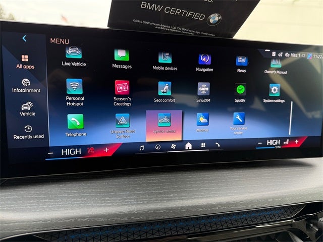 BMW Certified Pre-Owned Certified, 10 Speakers, 4-Wheel Disc Brakes, 48V Mild Hybrid System, ABS brakes, Active Park Distance Control, Air Conditioning, Alloy wheels, AM/FM Radio, AM/FM radio: SiriusXM with 360L, Apple CarPlay & Android Auto Compatibility, Audio memory, Auto High-beam Headlights, Auto-dimming door mirrors, Auto-dimming Rear-View mirror, Automatic temperature control, BMW Assist eCall, BMW Curved Display w/HUD, BMW TeleServices, Brake assist, Bumpers: body-color, Comfort Access Keyless Entry, Compass, Connected Package Pro, ConnectedDrive Services, Delay-off headlights, Drive Recorder, Driver door bin, Driver vanity mirror, Dual front impact airbags, Dual front side impact airbags, Electronic Stability Control, Emergency communication system: BMW Assist eCall, Exterior Parking Camera Rear, Four wheel independent suspension, Front anti-roll bar, Front Bucket Seats, Front Center Armrest, Front dual zone A/C, Front reading lights, Fully automatic headlights, Garage door transmitter, Genuine wood console insert, Genuine wood dashboard insert, harman/kardon Surround Sound System, Heated door mirrors, Heated Front Seats, Heated front seats, Heated Steering Wheel, Hi-Fi Sound System, HVAC memory, Illuminated entry, Knee airbag, Leather steering wheel, Low tire pressure warning, Lumbar Support, Memory seat, Navigation, Navigation System, Occupant sensing airbag, Outside temperature display, Overhead airbag, Overhead console, Panic alarm, Parking Assistance Package, Parking Assistant Plus, Passenger door bin, Passenger vanity mirror, Perforated SensaTec Upholstery, Personal eSIM 5G, Power door mirrors, Power driver seat, Power Front Seats, Power moonroof, Power passenger seat, Power steering, Power Tailgate, Power windows, Premium Package, Radio data system, Rain sensing wipers, Rear anti-roll bar, Rear reading lights, Rear seat center armrest, Rear window defroster, Rear-View Camera, Remote Engine Start, Remote keyless entry, Security system, SiriusXM w/360L, Speed control, Speed-sensing steering, Speed-Sensitive Wipers, Split folding rear seat, Sport Seats, Sport steering wheel, Steering wheel mounted audio controls, Surround View w/3D View, Tachometer, Telescoping steering wheel, Tilt steering wheel, Traction control, Trip computer, Turn signal indicator mirrors, Variably intermittent wipers, Wheels: 18 x 7.5 V-Spoke Bicolor, Widescreen Display, Wireless Device Charging, Heated Seats, All Wheel Drive, Blind Spot Monitoring, Back up Camera.